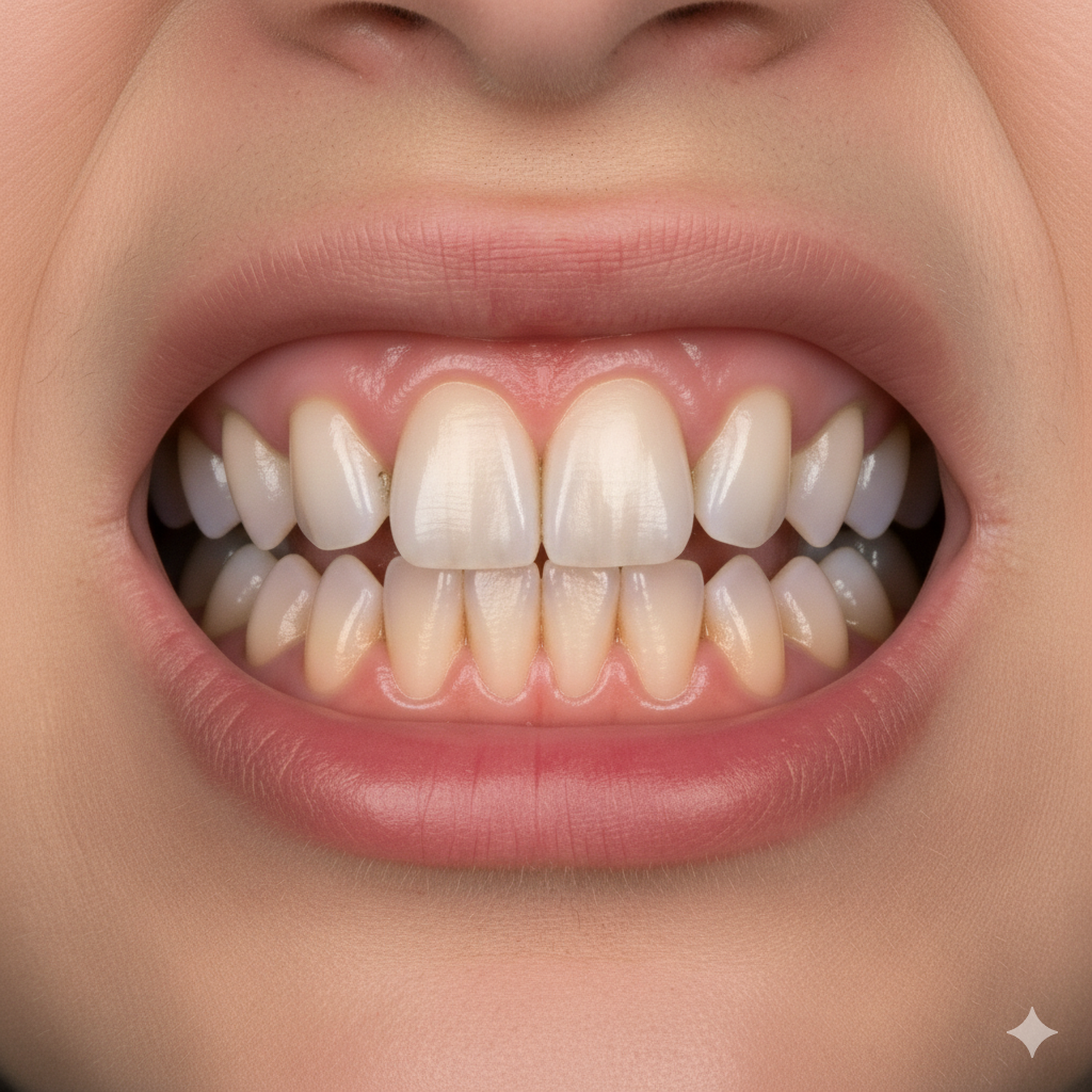 Utilizamos tecnologias de clareamento a laser e facetas de porcelana para transformar sorrisos de forma natural e duradoura. Arraste a barra para ver a transformação.